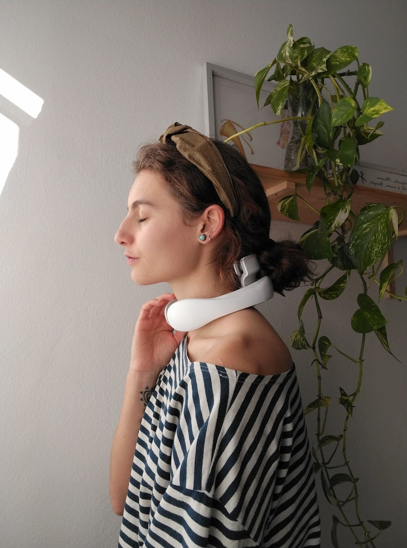 Its aerodynamically crafted, enveloping design automatically conforms to the curve of your neck, (so you don't have to worry about your neck size) reducing pressure and ensuring a snug fit without slipping. The anti-slip arms add an extra layer of stability, allowing you to enjoy its benefits while engaged in a myriad of activities. Qlisol becomes your trusted companion whether you're cleaning the house, cooking, watching a movie, studying, or even driving.