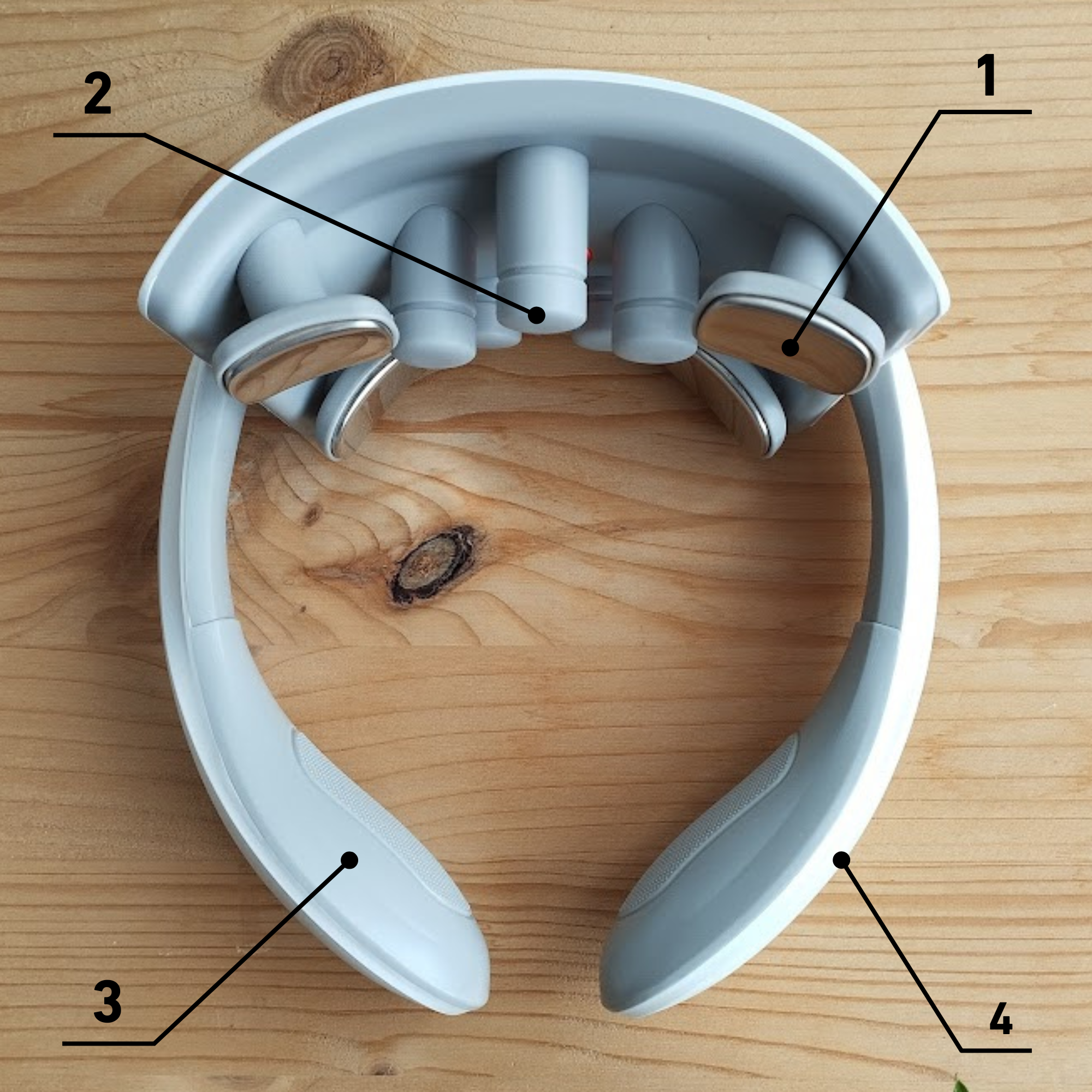 By simply pressing the button, Qlisol will start to gently massage your neck area with all the 9 head, and you can adjust the intensity of the low frequency electromagnetic pulses. You can also turn off the electromagnetic pulses, and enjoy only the circular massage from the 5 central heads, for muscle tensions relief.